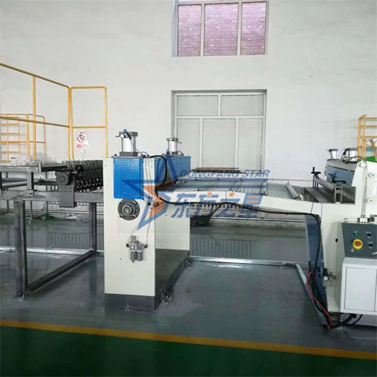 สายการผลิตเครื่องอัดรีด HDPE Geogrid ใช้ในการผลิต geocells ขั้นตอนแรกของผลิตภัณฑ์นี้คือการผลิตแผ่น จากนั้นจึงตัดแผ่นแบบออนไลน์ จากนั้นจึงเชื่อมต่อแผ่นพลาสติกเข้าด้วยกัน