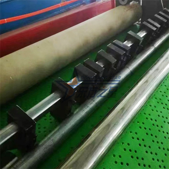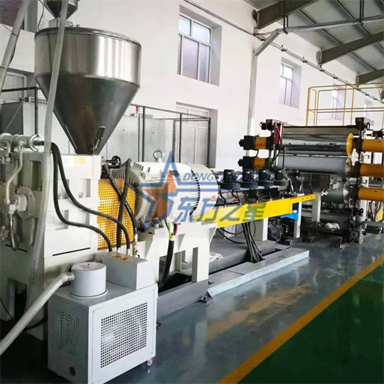 อุปกรณ์ Geogrid แผ่น HDPE ใช้ในการผลิต geocells ขั้นตอนแรกของผลิตภัณฑ์นี้คือการผลิตแผ่น จากนั้นจึงตัดแผ่นแบบออนไลน์ จากนั้นจึงเชื่อมต่อแผ่นพลาสติกเข้าด้วยกัน