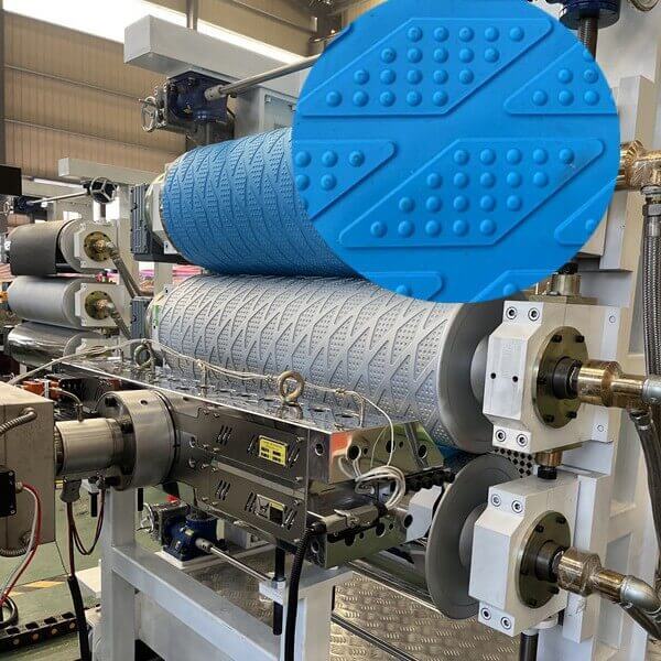 ในระหว่างการเยือน ลูกค้าจะได้รับภาพรวมที่ครอบคลุมเกี่ยวกับความเชี่ยวชาญเฉพาะด้านสายการอัดรีดออกแบบมาเพื่อการประมวลผลวัสดุอเนกประสงค์เหล่านี้ ทัวร์มีการสาธิตสดของสายการผลิตแผ่นกันลื่น TPUจัดแสดงการอัดรีดที่แม่นยำ การระบายความร้อนที่มีประสิทธิภาพ และกระบวนการตัดที่แม่นยำ ลูกค้าแสดงความสนใจเป็นพิเศษในสกรูและบาร์เรลที่ออกแบบเป็นพิเศษ ซึ่งรับประกันการผสมพลาสติกและการผสมที่เหมาะสมที่สุดสำหรับเกรดอีลาสโตเมอร์ที่แตกต่างกัน นำไปสู่คุณภาพของเสื่อที่สม่ำเสมอพร้อมคุณสมบัติป้องกันการลื่น ความทนทาน และความสวยงามที่ยอดเยี่ยม