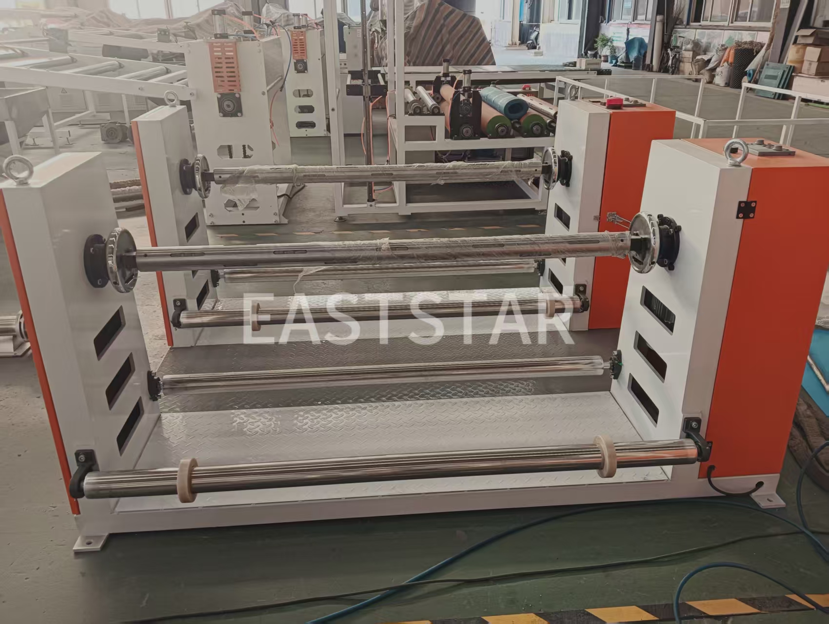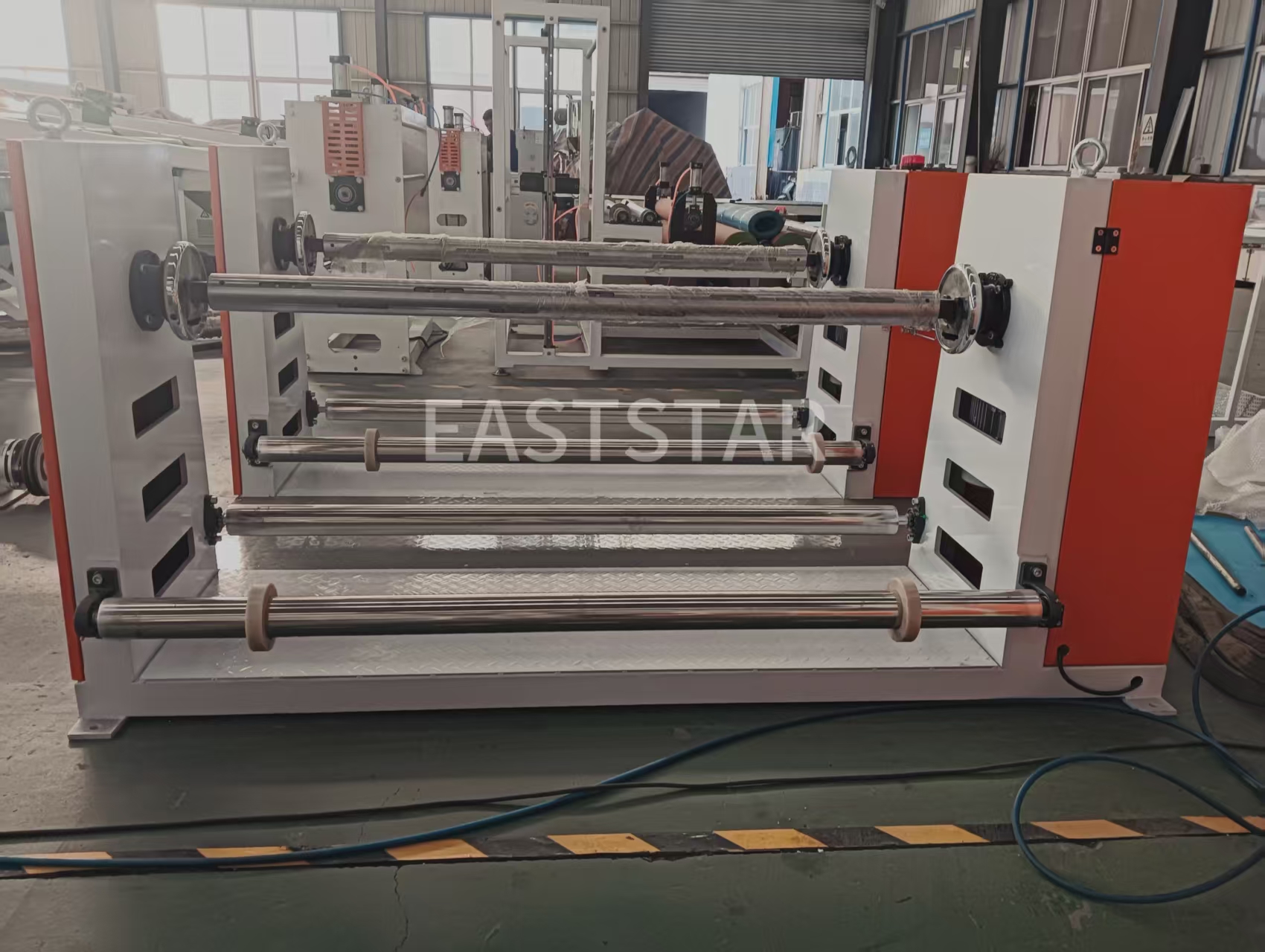 ระบบควบคุมอุณหภูมิลูกกลิ้งใช้น้ำสะอาดอ่อนตัวเป็นสื่อกลาง โดยมีความแม่นยำในการควบคุมอุณหภูมิที่ ±1°C และติดตั้งปั๊มน้ำร้อนขนาด 2.2KW และเครื่องทำความร้อนขนาด 9KW สามชุด อุปกรณ์คลี่คลายแบบสองสถานีมาพร้อมกับเพลานิวแมติกและระบบควบคุมความตึงเพื่อให้ได้การผลิตที่ต่อเนื่อง ที่สายการผลิตเมมเบรนกันน้ำยังมาพร้อมกับอุปกรณ์ตัดแต่งขอบและระบบม้วนขอบเสียเพื่อให้แน่ใจว่าขอบผลิตภัณฑ์เรียบร้อย