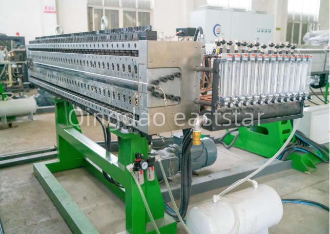 ที่แม่พิมพ์ระบบของสายการผลิตแผงกริดเซลล์เปิด PPทำจากเหล็กแม่พิมพ์คุณภาพสูง โดยมีความกว้างของการเปิดแม่พิมพ์ 2200 มม. สามารถผลิตแผงกริดเซลล์เปิดที่มีความหนา 2-6 มม. แม่พิมพ์ติดตั้งระบบทำความร้อน 11 โซนด้วยกำลังความร้อน 4KW/โซน โดยใช้ความร้อนภายในเพื่อให้มั่นใจว่าอุณหภูมิจะสม่ำเสมอ แพลตฟอร์มการสร้างรูปร่างและทำความเย็นแบบสุญญากาศใช้การออกแบบผสมผสานระหว่างการทำความเย็นและการสร้างรูปร่างแบบสุญญากาศสองขั้นตอน บวกกับการทำความเย็นและการสร้างรูปทรงแบบขั้นตอนเดียว พร้อมด้วยปั๊มสุญญากาศขนาด 15KW เพื่อให้แน่ใจว่าการขึ้นรูปแผ่นมีความเสถียร การกำหนดค่าแบบมืออาชีพเหล่านี้ช่วยให้มั่นใจได้ว่าผลิตภัณฑ์ที่ผลิตโดยสายการผลิตแผงกริดแบบเซลล์เปิดมีโครงสร้างกริดที่สม่ำเสมอและความแม่นยำของมิติที่เสถียร