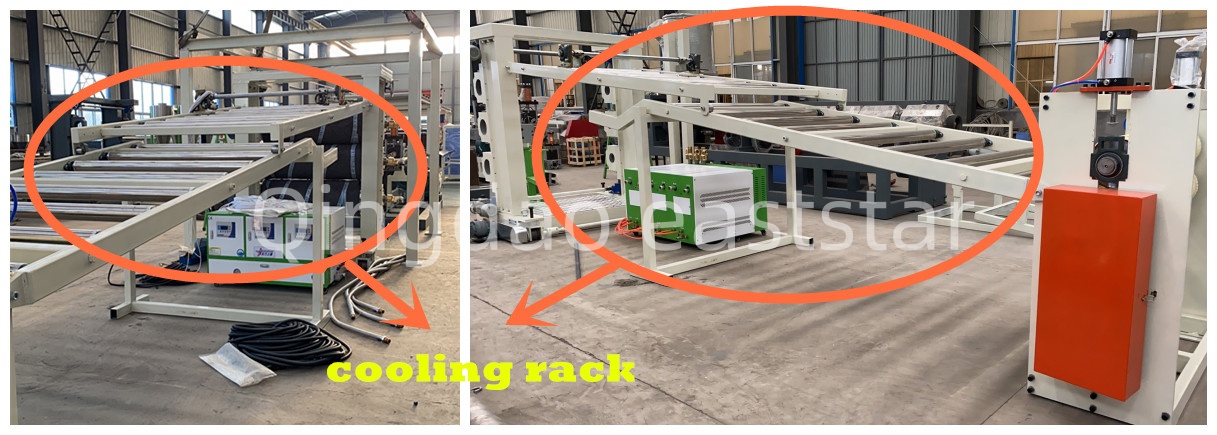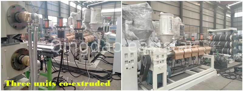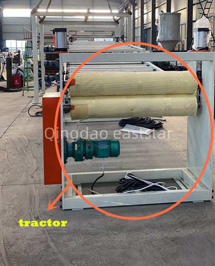 ทั้งหมดสายการผลิตอัดรีดร่วมหลายชั้นยังมีเครื่องเปลี่ยนตะแกรงไฮดรอลิกสองตัว ระบบระบายความร้อนสูง 8 เมตร และระบบตัดแรงฉุด เครื่องเปลี่ยนหน้าจอใช้ส่วนประกอบไฮดรอลิกของไต้หวัน ช่วยให้เปลี่ยนหน้าจอได้โดยไม่ต้องหยุดเครื่อง เครื่องลากจูงมีลูกกลิ้งยางไนไตรล์ Φ240×2500 มม. ขับเคลื่อนด้วยมอเตอร์ 2.2 กิโลวัตต์ ทำให้มีการควบคุมความเร็วแบบซิงโครนัสด้วยลูกกลิ้งทั้งสามตัว ระบบควบคุมไฟฟ้าของอุปกรณ์แผ่นอัดรีดร่วม ABS ใช้ PLC ของ Siemens S7 series และหน้าจอสัมผัส รวมกับตัวแปลงความถี่ ABB เพื่อให้แน่ใจถึงการทำงานที่ประสานกันของทั้งสายการผลิต