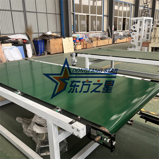 เครื่องอัดรีดแผ่นพีวีซีนุ่ม เครื่องลายเต่าเรียกอีกอย่างว่าอุปกรณ์กระดานปศุสัตว์พีวีซี ส่วนใหญ่จะใช้สำหรับปูดินโรงสุกร วัว และแกะ มีบทบาทในการกักเก็บความร้อนและเป็นประโยชน์ต่อการผลิตสัตว์ อุปกรณ์กระดานเต่าพีวีซีประกอบด้วย: เครื่องอัดรีด, แม่พิมพ์แผ่น, ปฏิทินสามม้วน, ขายึดระบายความร้อน, เครื่องลาก, เครื่องตัด, ขายึดลำเลียง, ผลผลิตรายชั่วโมง 350-400 กิโลกรัม/ชั่วโมง, ข้อมูลจำเพาะของแผงเต่าพีวีซี: กว้าง 1,000 มม., หนา 6 มม. ความกว้างและความหนาของผลิตภัณฑ์สามารถปรับได้และสามารถสั่งซื้ออุปกรณ์ได้ตามความต้องการของลูกค้า อุปกรณ์กระดานเต่าพีวีซียังสามารถผลิตผลิตภัณฑ์เปลือกส้มและลายเพชรโดยการเปลี่ยนลูกกลิ้งตรงกลาง